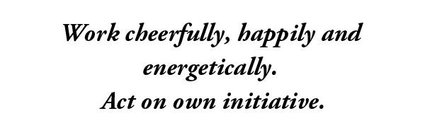 Our corporate slogan at Jplanning Corporation is "Work cheerfully, happily and energetically. Act on own initiative.".